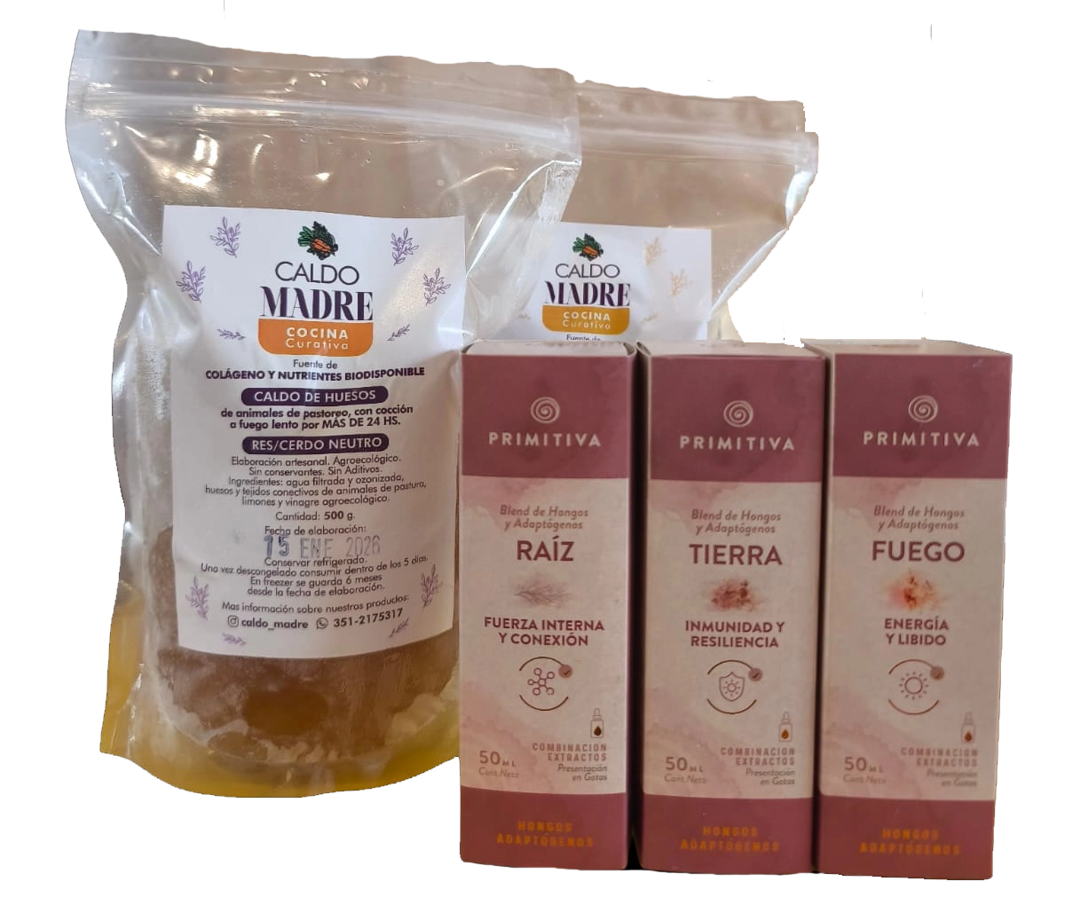 Un combo diseñado para fortalecer el cuerpo, equilibrar la energía y acompañar los procesos internos, combinando nutrición ancestral con el poder de los hongos adaptógenos.